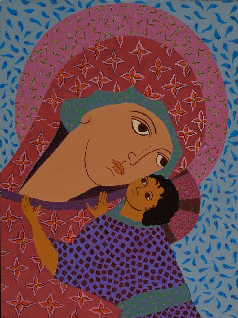Madonna and Child with Angels, 2015, Oil on board, 9 x 12, Sold